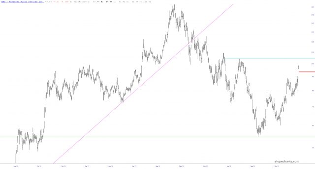 There are some here who have been asserting that the strength in semiconductors is indicative of a new bull market. I take, surprise, surprise, the utterly opposite view. I believe semis are the last holdout before all holy hell breaks lose. It’s nice to see my two positions start to behave themselves today.