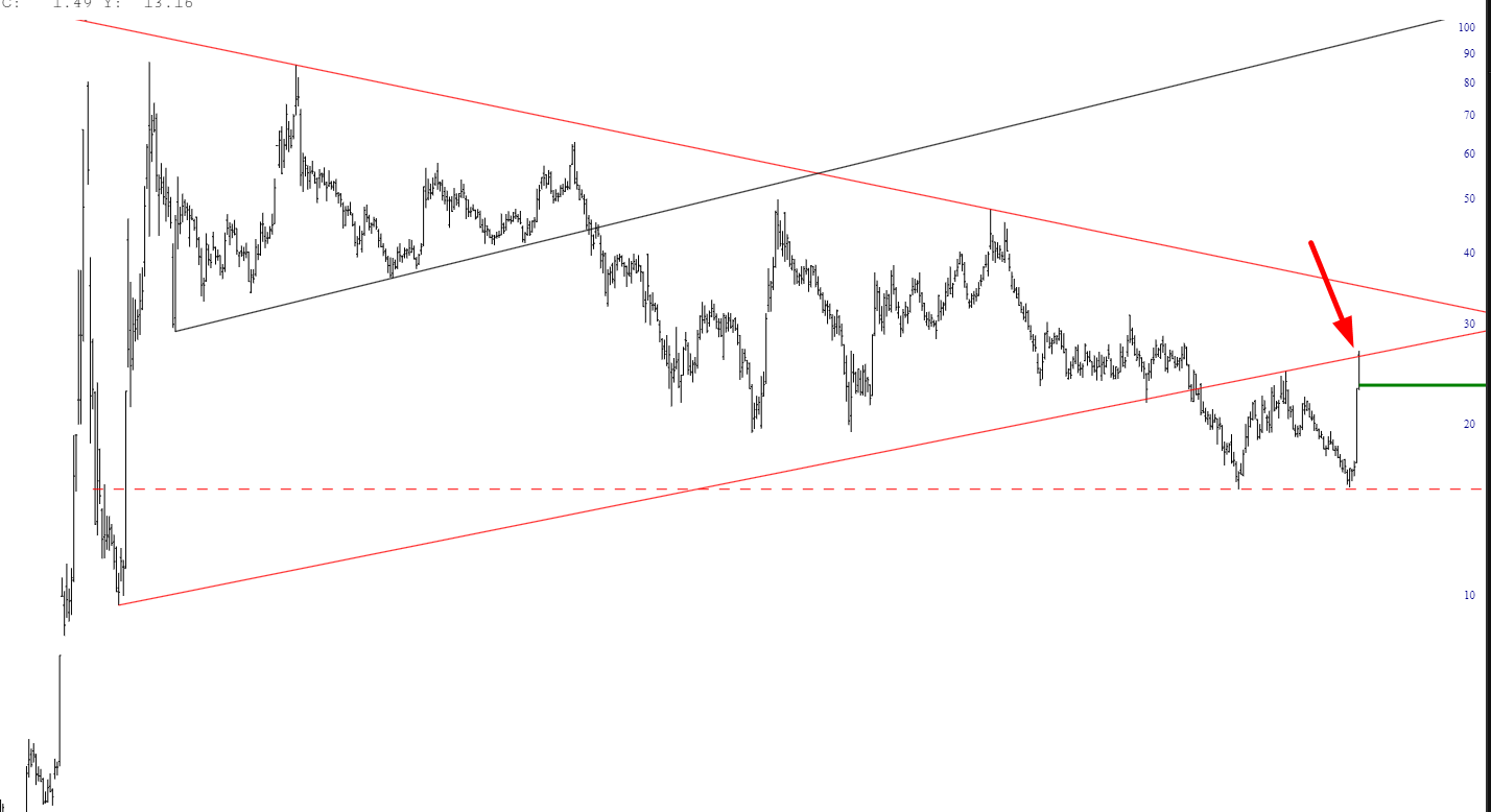 Gamestop (GME), the perpetual favorite of WSB fanboys everywhere, roared higher after earnings. I had no position, no do I intend to have one, but even last night I was confident the trendline was provide firm resistance, and it certainly did.