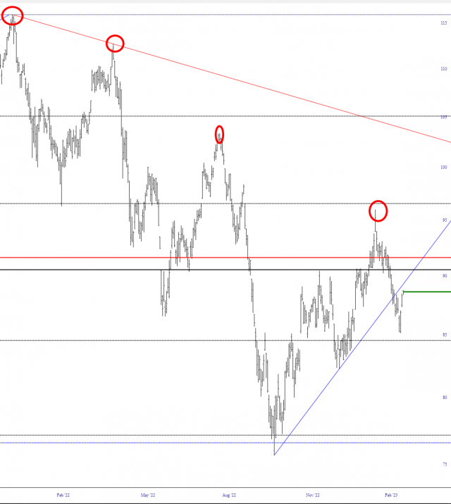 Take note how, over the longer term, the price peaks have carved out a series of lower highs for the entirety of this ostensible bear market.