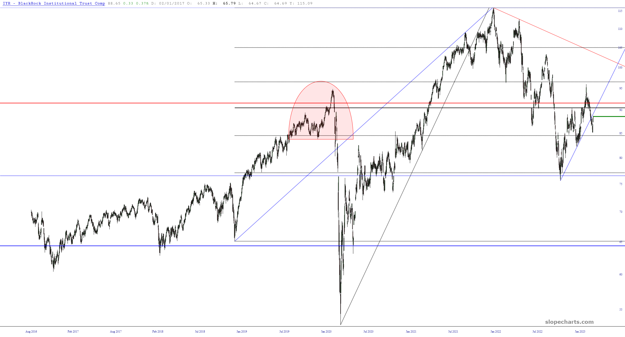 Looking out even farther, you can see what a potentially important tumble IYR could be approaching.
