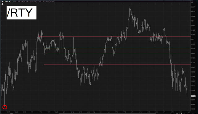 In point of fact, the small caps have been so weak that, incredibly, we are approaching the lowers of the Rolo Bottom of October 13th!