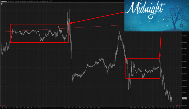 One other curious tweak I’ve noticed is that the market LOOKS like it’s going to launch into bull mode at precisely midnight, and then it feels woozy, gets sweat, and then barfs all over the lapels of its blue rented tuxedo.