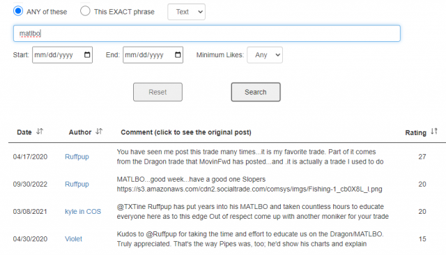 It is VASTLY improved over the prior version, and you can get to it from any blog post or from SlopeTalk. You can restrict searches based on whether it is just a text comment, whether it is part of a URL, or whether it’s a poll. You can constrain it by start and end dates as well as the minimum number of Likes. There are other improvements, but you get the idea.