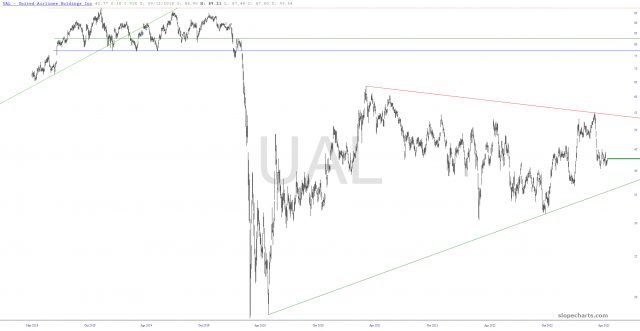 To my mind, the earnings season actually begins this afternoon. All the bogus bank earnings don’t mean much to me, because when you’ve got an multi-trillion dollar backstop from the government, you aren’t running a business. You’re just in charge of a government agency. The real businesses start reporting after today’s close. Below are three of note. The first is United Airlines.