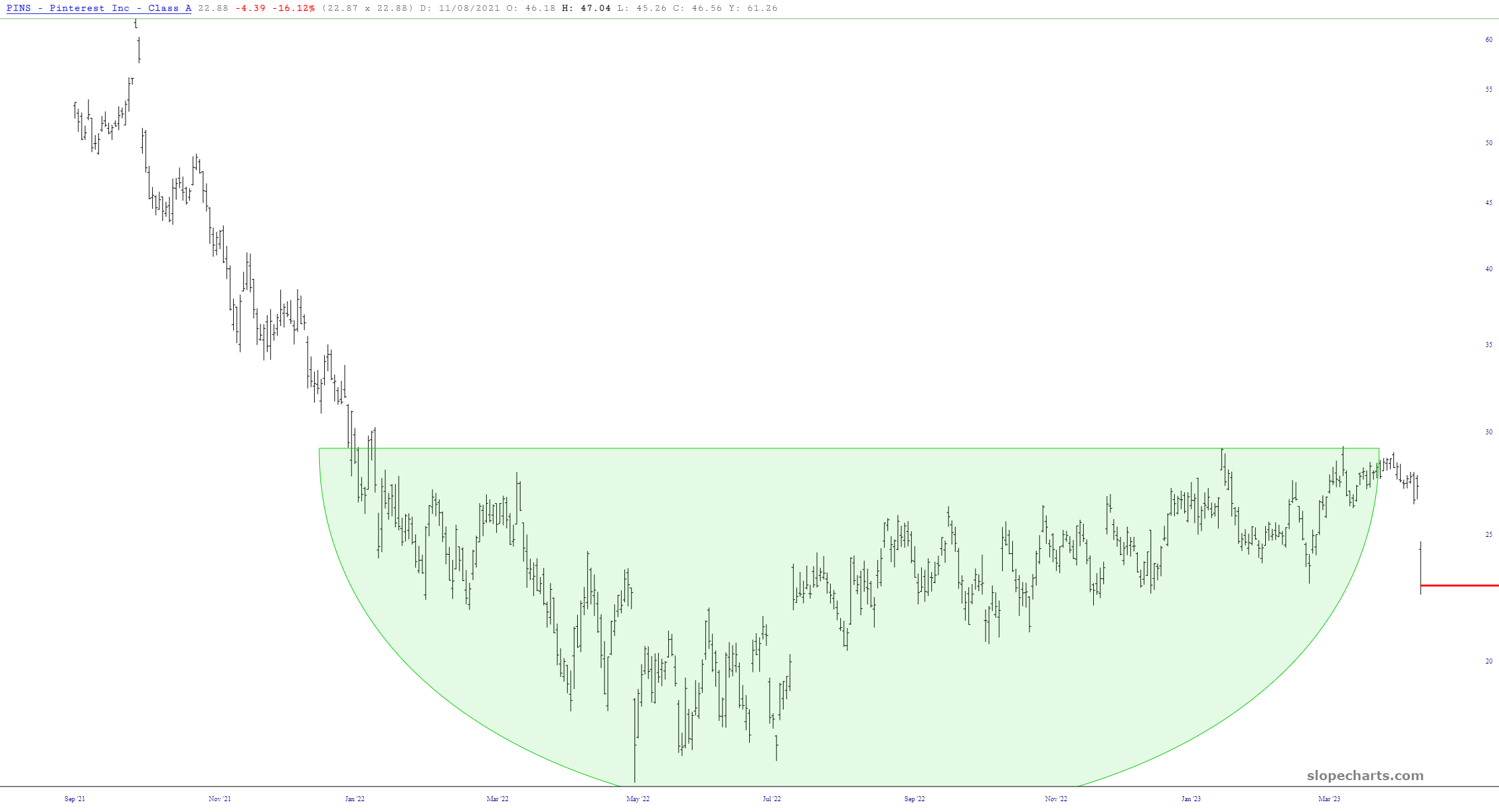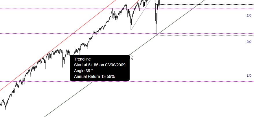 We’ve made a small improvement to trendlines, but I suspect some of you will really want to know about this. Already, when you point at a trendline on your chart, it will show you the start date, the starting value, and the angle in degrees. We’ve added a fourth data point, which is the annualized percentage return of the trendline.