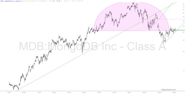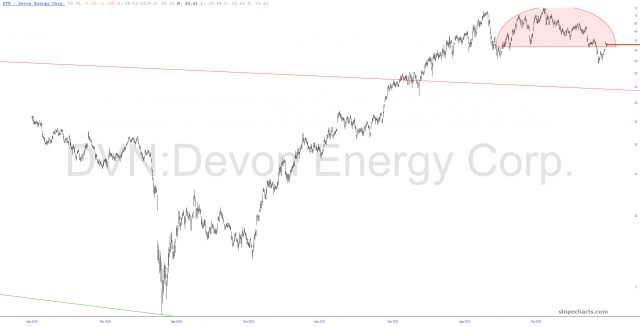 My Bear Pen watch list has 30 items, 20 of which I already am long puts. The other 10 are shown below. I consider all of these intriguing short candidates, but conditions weren’t quite right yet to pull the trigger. I offer them to you below for your perusal.