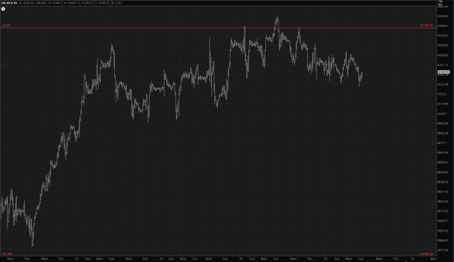 The disappointment from the likes of FRC vomiting up blood are being witnessed in the market in general, although if the past fifty thousand sessions are any guide, the lovely double-digit red numbers on ES, NQ, and RTY will all be pushed higher throughout the day until we wind up with a +0.00 change for every stock and index on the planet. For the moment, however, we can bask in the gentle glow of an /ES which has clearly failed to push past its major Fibonacci resistance.