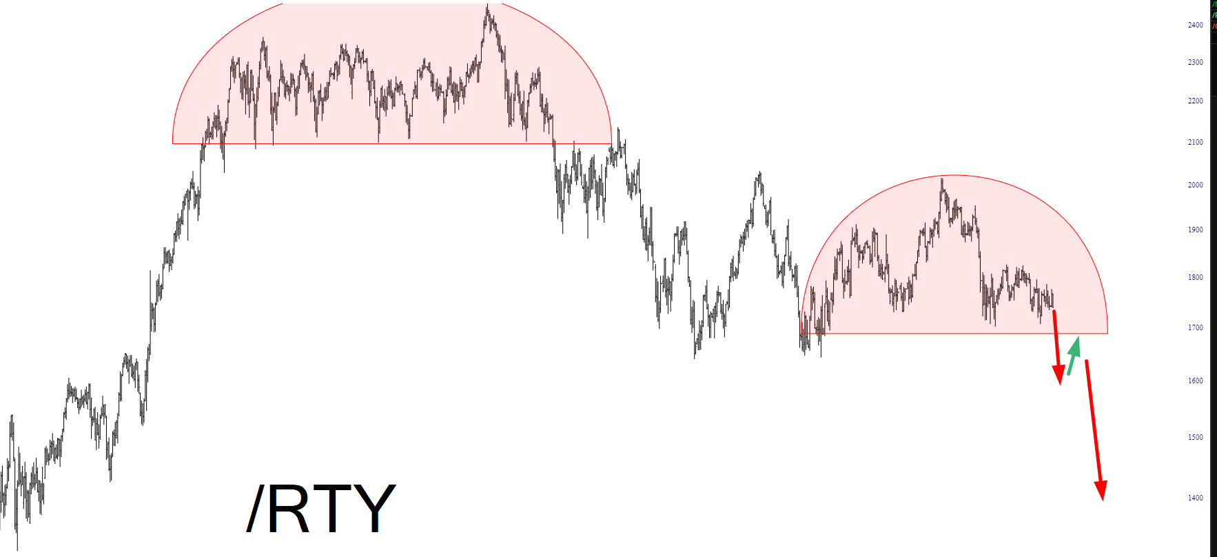 I’m sure it’s like that, from Apple on down, and thus I’d like to indulge in a quick little fantasy based on the magnificently well-formed head & shoulders pattern on the Russell 2000 stock index futures. I know that in this fake, government-controlled “market” we’ve had since 2008 it’s hard to imagine something actually going down, but here is my fondest hope and speculation: