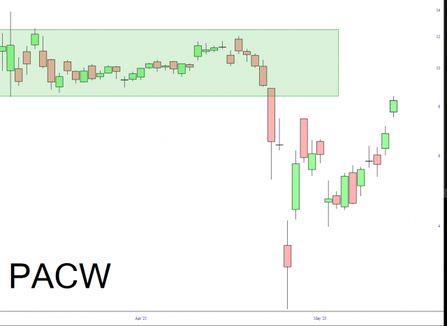 Part of what has powered the market so high is the bounce from the regional banks. I daresay this “up 20% every day” thing is coming to an end today.