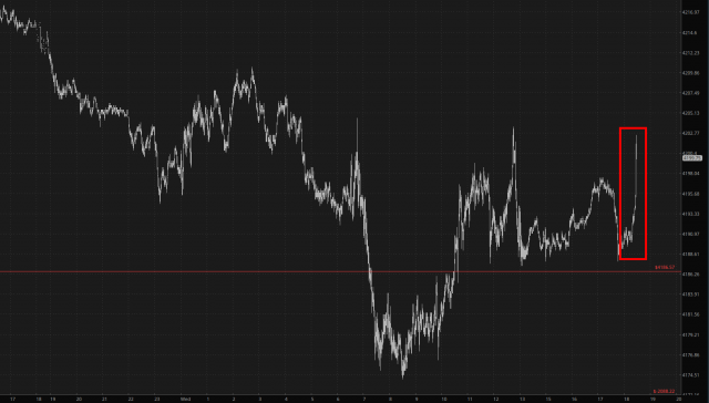 Immediately on the heels of this, the equity markets zipped higher. Nothing cataclysmic, but decidedly green.