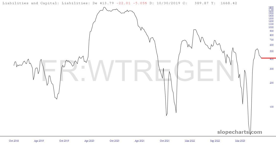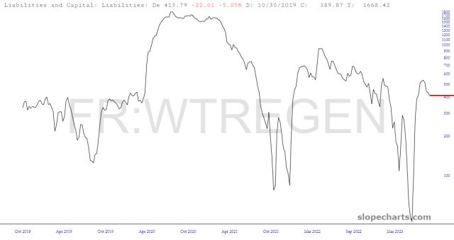 Being Thursday, that means we can catch up on the liquidity data. The Antichrist Yellen handed out more free cash to her banking buddies, although the pace has slowed to virtually nothing.