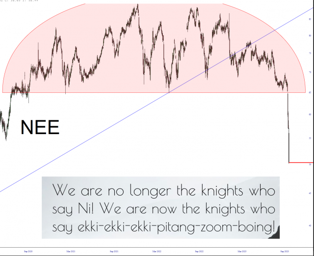 There’s no doubt about it. My declaration to go bearish on Utilities was one of the greatest calls of all time and, simultaneously, one of the most poorly-executed in my life. I made 144%, but this sucker has continued to collapse, and I don’t think it’s even done yet. I am SUCH an idiot. I hope you people have done better with my genius trade, having not been burdened with my empty head!