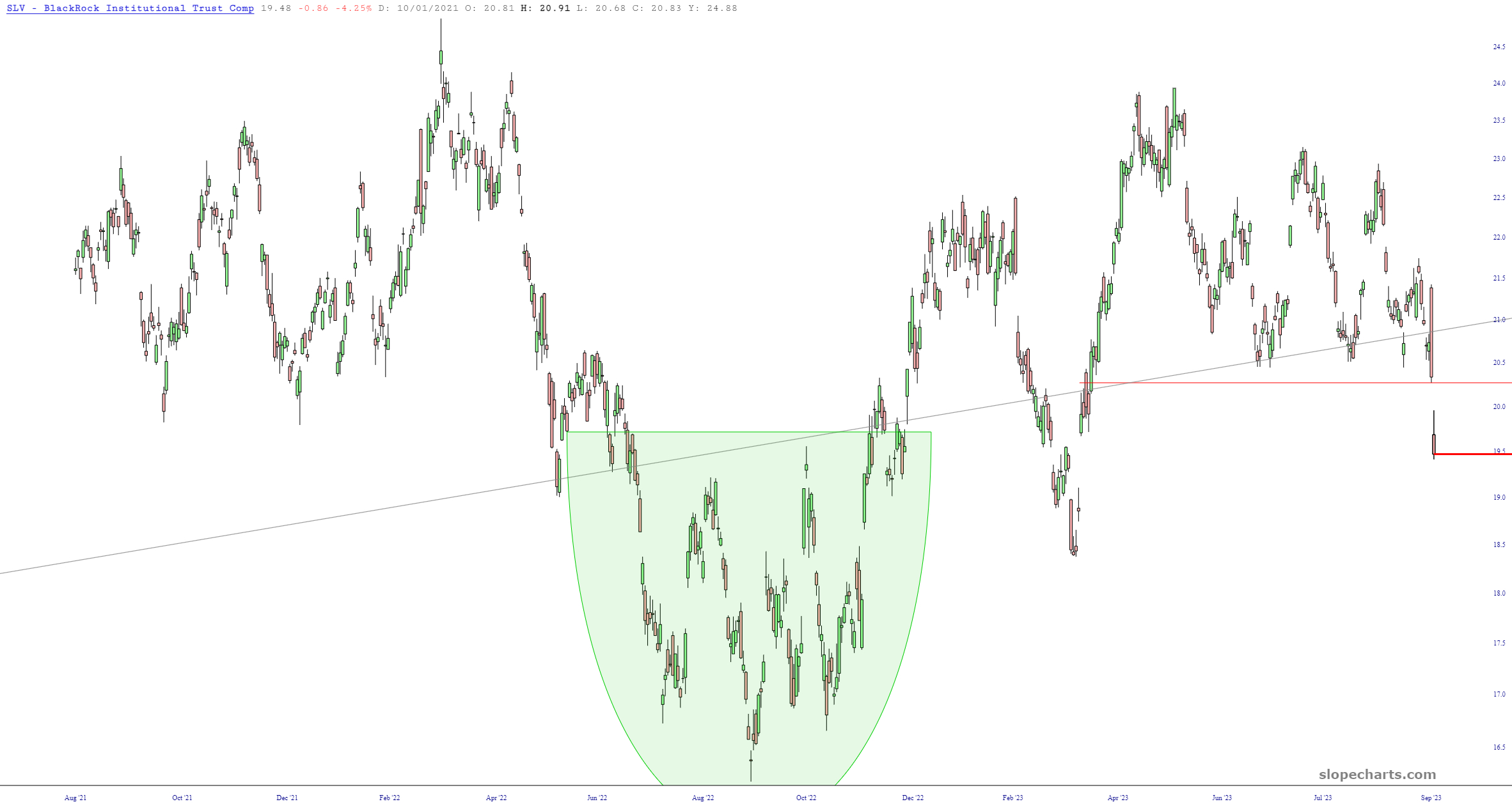 I pointed out last week how big a deal the failure of the trendline was; this poor thing is just shot.