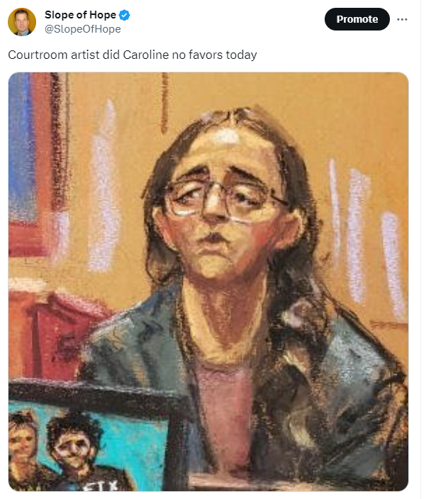Tomorrow morning is the more significant CPI report, which, again, people expect to be the sequel to the burst we saw on October 13, 2022. We shall see. In the meanwhile, I’ll let Caroline Ellison’s talented courtroom artist have the last word.