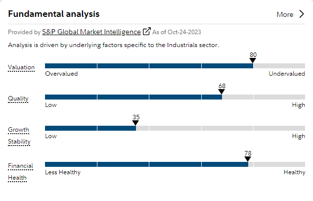 Digging deeper into our oversold industrial, we find that its fundamentals are strong, except for growth stability.