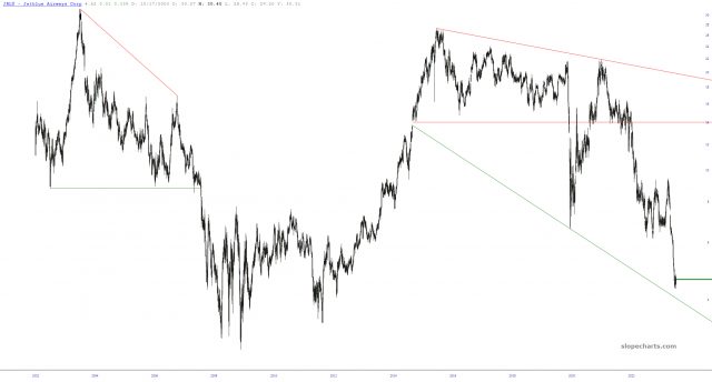 Ready to Fly? By Tim Knight - 2 years ago (11, Oct 2023 11:05:00 AM) JetBlue (JBLU) has been beaten to a pulp, but I thought I’d offer the chart below for a prospective long-term buy idea. « Prior Next » https://slopeofhope.com/2023/10/ready-to-fly.html Ready to Fly? In order to comment on this blog, you must have JavaScript installed and enabled. « Prior Next »