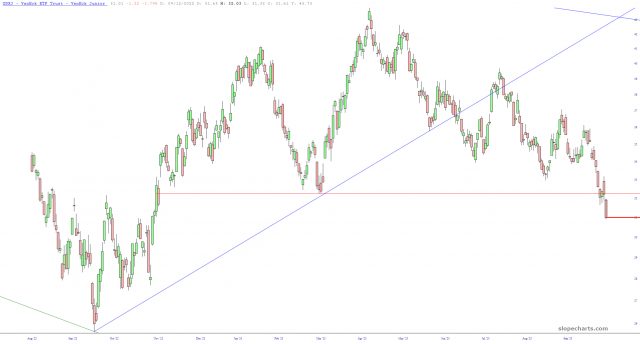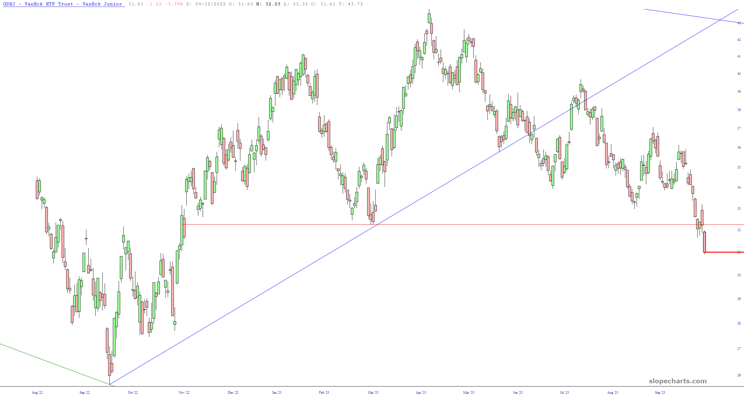 Silver Melting By Tim Knight - 2 years ago (02, Oct 2023 10:55:49 AM) I pointed out last week how big a deal the failure of the trendline was; this poor thing is just shot. Precious metals miners are likewise withering away (again, as predicted last week) « Prior Next » https://slopeofhope.com/2023/10/silver-melting.html Silver Melting In order to comment on this blog, you must have JavaScript installed and enabled. « Prior Next »