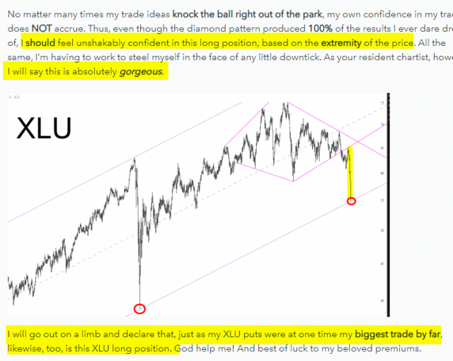Last week, on October 3rd, I did a premium post called Bucking Bronco in which I emphatically suggested going long XLU, right on the heels of my super-successful XLU bearish call. Here’s a snippet: