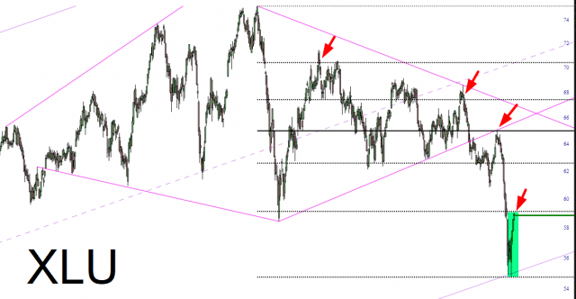 Here is a longer view, which nicely illustrates how potent the Fibonacci has been with respect to the Utilities ETF in terms of resistance levels. Congratulations to premium members who made profits on this long position!