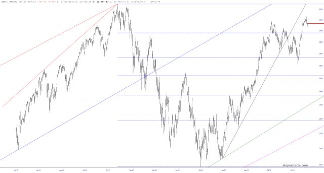 I cannot allow myself to end the day without a substantial post, but here we go. I wanted to share a few index charts and a few thoughts on them, even though the market is seriously a big fat MESS at the moment. We begin with the NASDAQ Composite, about which I’ll make these observations: