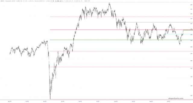 Finally, a chart I can read! The Russell 2000 is honestly the only thing that isn’t a total nightmare. We seem at rock-hard resistance here. THIS chart I can work with, and I would say it’s cooked.