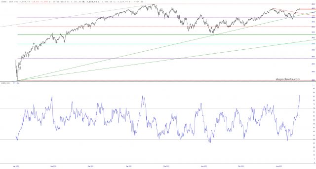 One last tidbit for ANY surviving bears (you don’t exist………) is the S&P 500 with the 25-dasy RSI. Notice anything about it? Yeah, it’s beyond nosebleed. The highest in YEARS AND YEARS. Not sort of high. Not kind of high. INSANELY, STUPIDLY HIGH. Want to buy the stock market because Jim Cramer says so? Be my guest! He’s fat, dumb, and happy, and so we all can be!