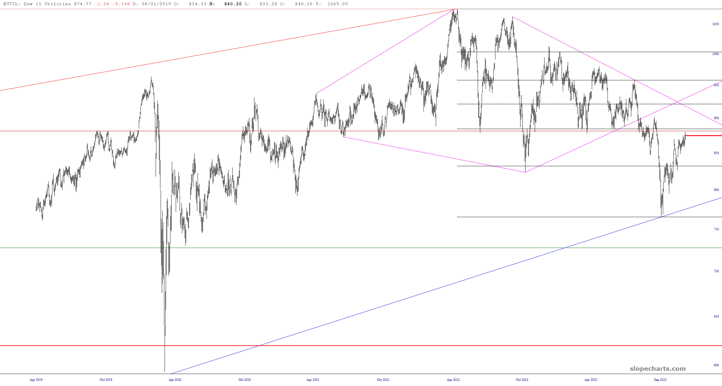 Actually, let me correct myself, because my good friend $UTIL is still a beautiful chart. This is the greatest diamond pattern I’ve ever seen. And, if I was a total putz, I’d add “full stop”, but I’m not, so I won’t.