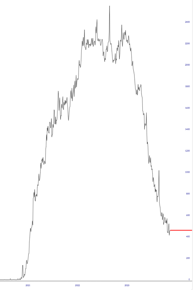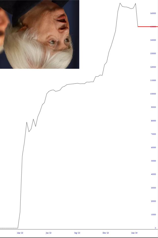 As for BTFP, Yellen’s scheme that started over a year ago and has shuttered on schedule, it is falling for the first time in its history. I suppose the reason is that the healthier banks are starting to pay the funds back.