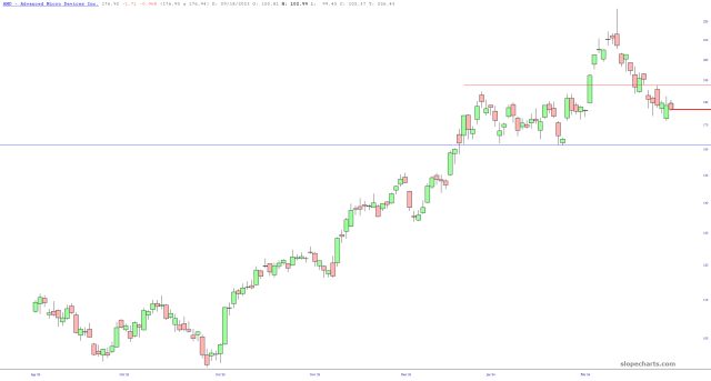 Finally, AMD is still respecting its price gap. I think we can agree that if and when semiconductors ever start to enter their own bear market, they are going to drag down the entire tech sector, kicking and screaming.
