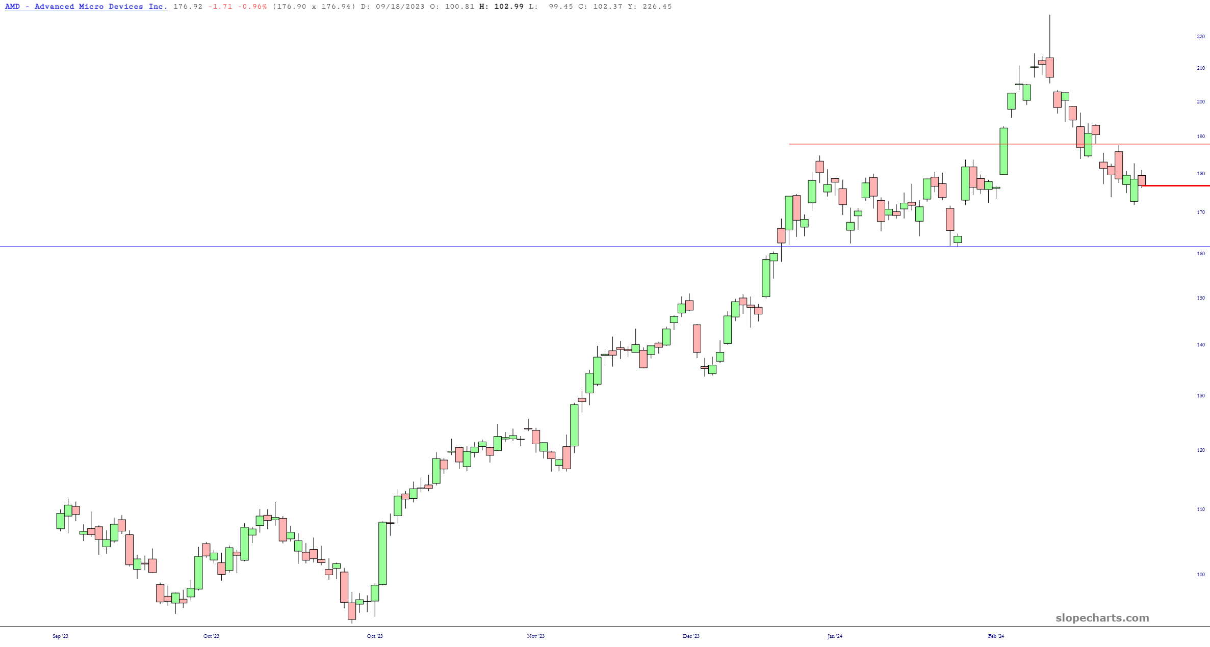 Just a few thoughts on a handful of semiconductor stocks. First, the king of them all, Nvidia. I read that there is a tremendous amount of call-buying activity at the $1,000 level. Clearly there is a strong conviction that the psychologically satisfying Big Round Number will be achieved. Not yet!