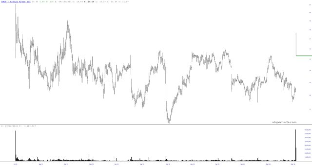The stock traded under the symbol KKD for years, but it was taken private in 2016. It has come public again, this time with the symbol DNUT, and it has had an excellent week.