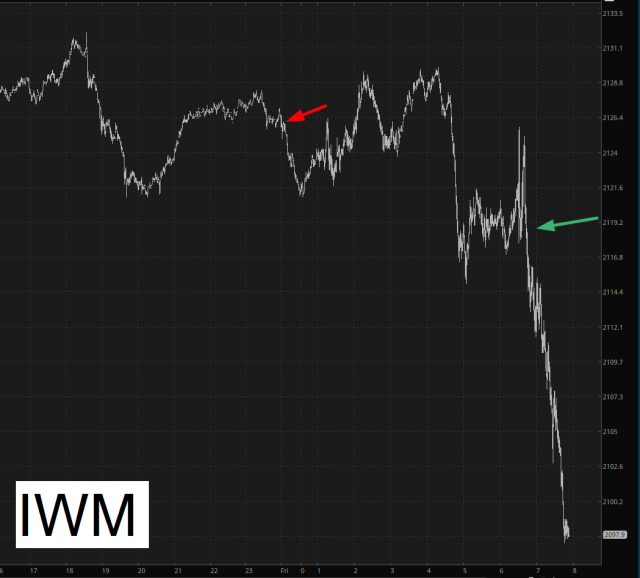 Long story short, I cost myself money by scaring myself out of a position based on a supposition instead of actual price action. Who knows, maybe I was right the whole time, and this position will get blasted to smithereens again…………but as I stand here now, me talking myself out of IWM was a psychological error.