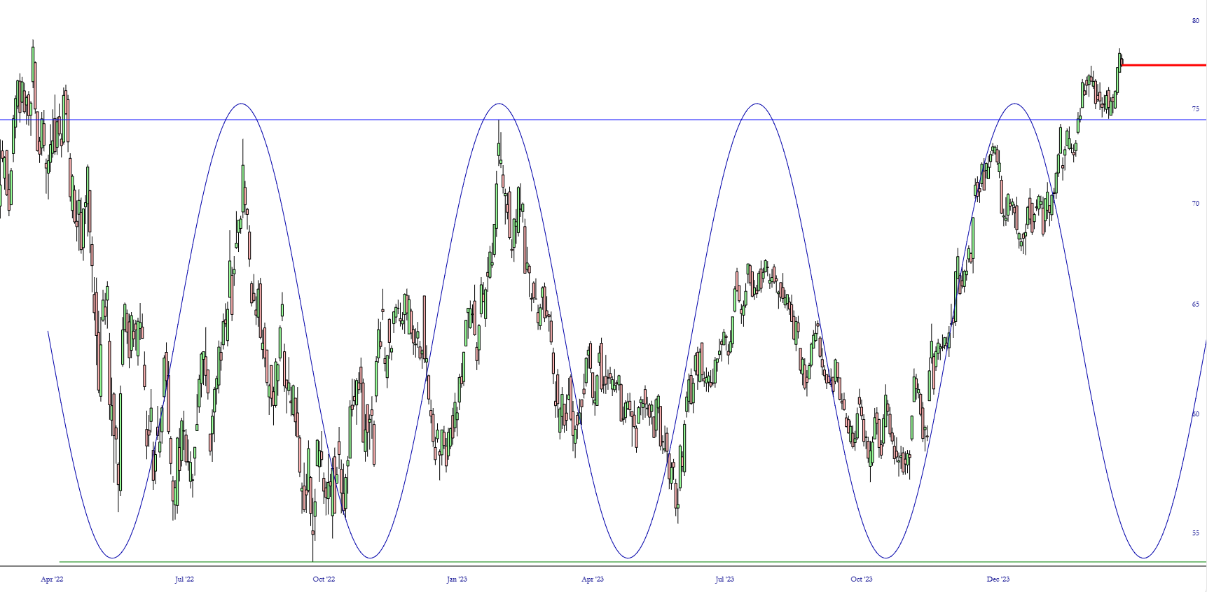 What I meant by that is explained with the next chart. You see, the retail fund XRT was sporting an exceptional sine wave pattern, just like the IWM. Indeed, it was better. However, once it broke out of the pattern, it never looked back. The pattern was wrecked. Thus, what was on my mind was the terrifying prospect that this would happen to IWM as well. You can probably see in my eyes the moment when I thought “I better get OUT of this position the moment the show is over!” So that’s what I did.