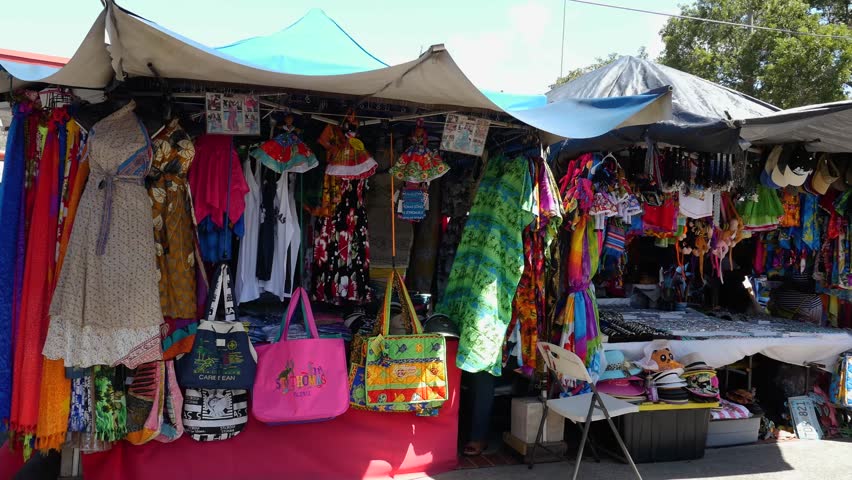 In St. Thomas, there is a flea market which caters, I suppose, to the fatties that waddle off the cruise ships. The flea market has all manner of tacky junk, from shirts to hats to license plates to bags – – it looks like this: