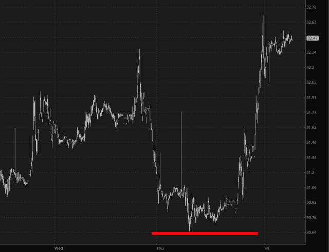 First off, there’s China. Last week, on Monday, I went whole-hog buying puts on JD, YUMC, and PDD. I made nice profits on those first two, although way too early, but I held on to PDD for a triple-digit (about 112%) gain. I sold almost all of it off yesterday but held on to some just because it doesn’t expire until January 17th and probably has more downside. Short-term, however, I decided to get very light on China based on the $HSI gap I have written about lately. The notion that China has bottomed short-term seems to have been on target, as FXI shows.