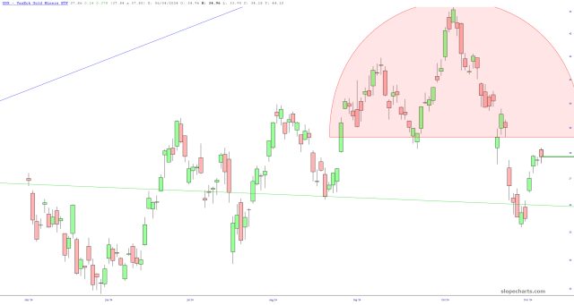 It seems to me that the rally in GDX and GDXJ is going to be stopped cold, based on the clean price gaps.