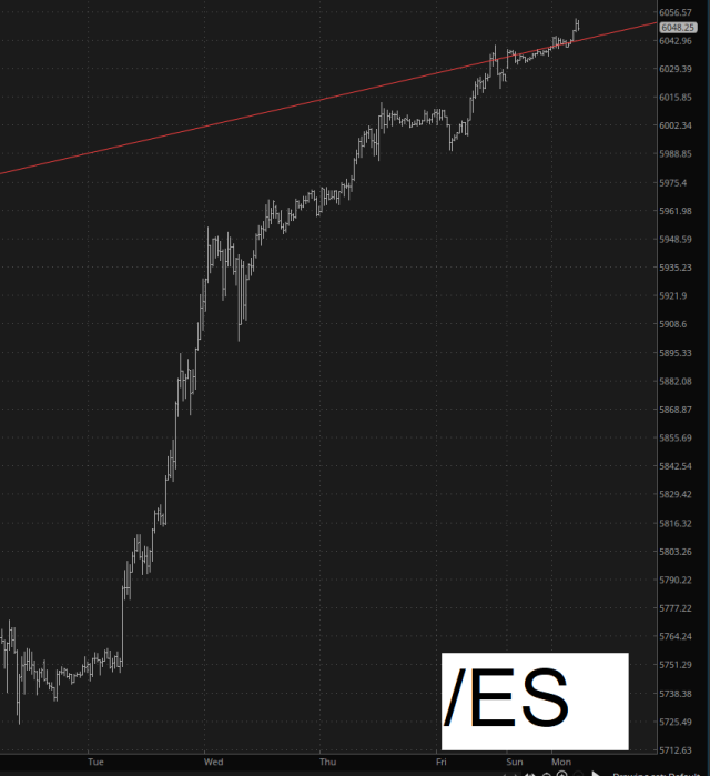 Equities are up as well, although not the eye-popping levels that BTC is. As I type this, the /ES is at a new lifetime high, but it is only about a quarter of a single percentage point gain. It’s getting kind of hard to squeeze any more blood from this stone.