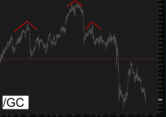 It was that precise pattern that turned me into Silver-Loving Lunatic into Silver Snubber. That’s a good thing, too because the futures are down (again) almost 2%, and it is threatening to break yet another horizontal.