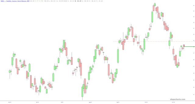 It seems to me that the rally in GDX and GDXJ is going to be stopped cold, based on the clean price gaps.