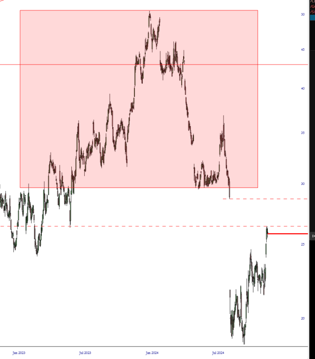 A specific semi against which I bought puts last week is Intel (INTC) which seems to have stalled out quite nicely, thank you very muc.