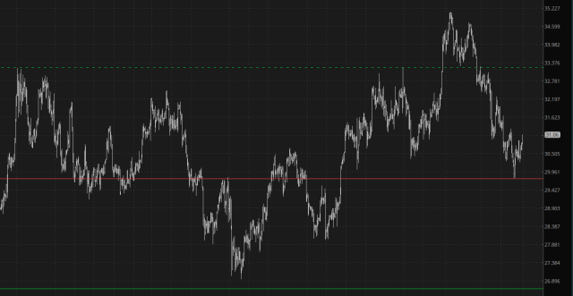 As for silver, at the risk of falling for her siren song again and fumbling, I’ve got to say I think the sub-$30 price last week was the bottom. It is fighting its way back, and I think the lower lows/lower highs we’ve witnessed for weeks now is finally behind us.