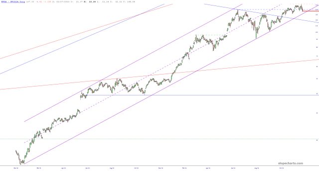 I wanted to point out a subtle but important little failure: NVDA has broken beneath its horizontal. This isn’t a huge deal, but it puts us on a potential path toward something much more important…….