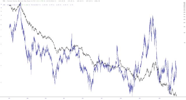 The layered chart shows how detached /NG movements can be from UNG.