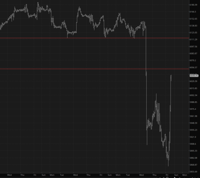 The combination of a massive options expiration today as well as (once again) shameless compromise in D.C. are yielding a huge triple-digit buy-fest on /ES and /NQ. Below is the /ES. Early today, I trimmed some positions, but I definitely have a vastly fatter portfolio at the open than right now! This will blow over soon enough.