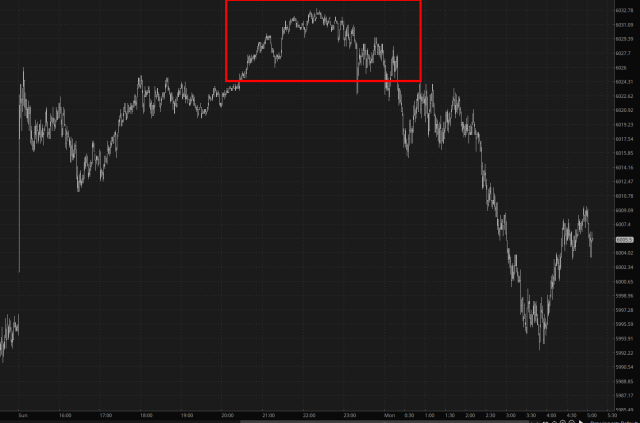 On Sunday, for No Particular Reason ™, the equity futures vaulted higher. The /ES was up over 30 points, but over the course of the night this has faded into virtually nothing. I continue to believe we’ll have another swoop lower at some point in the coming days, although this week and next week will probably be rather subdued, with a major holiday plopped right into the middle of each one.