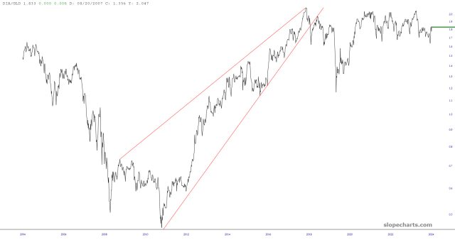 Which, in turn, you can import into SlopeCharts and start checking out ratio charts such as this one:
