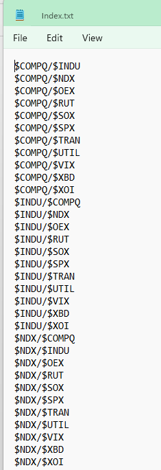 There are limits, of course. Given a watch list of “N’ symbols, it is going to generate a quantity of symbols equal to N-squared minus N. Thus, we are limiting it to the first 20 symbols of any given list, since that’ll create almost 400 combinations right there.