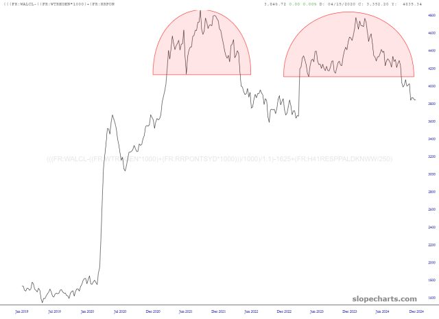 I’m skeptical how much efficacy the Fed Spread has anymore, but I must say, the pattern is striking. At this point, I’m convinced the market is purely and utterly psychology based. Let’s face it, if the empty-headed Huak Tuah girl can scam the public for half a billion dollars, then the nation has completely lost its mind.