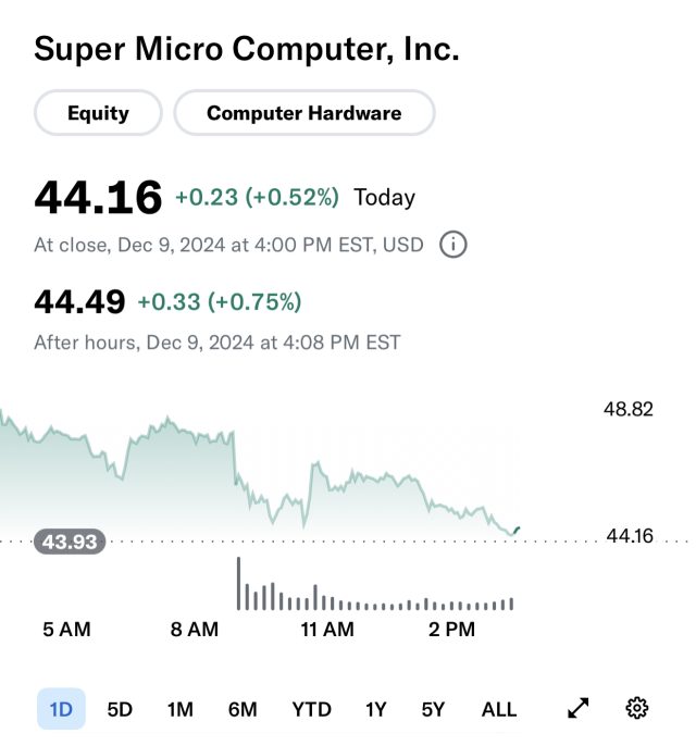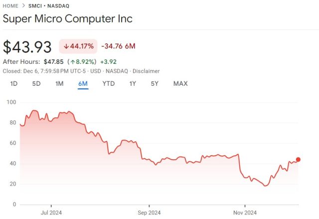 But SMCI was in some of our hedged portfolios six months ago, and it dropped more than 44% over that time frame.