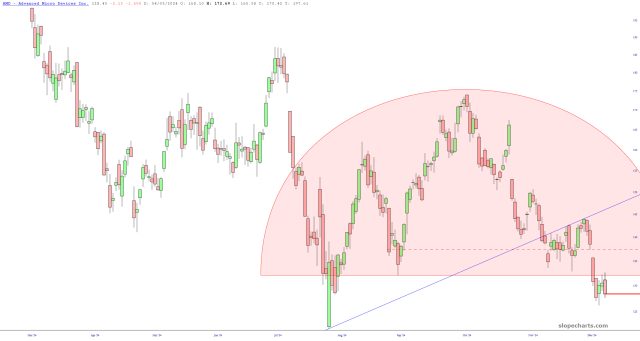 What am I doing about it? Getting MORE bearish! I’m increased my SMH position, and I’ve done the same with AMD, which has quickly become The New Intel of the semiconductor sector.